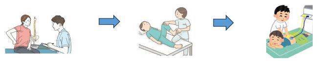 | 第1段階(1~4週) | 炎症軽減・可動域改善 | 週2回 | ・骨盤/骨盤調整 ・筋膜リリース ・電療 ・セルフケア指導 |